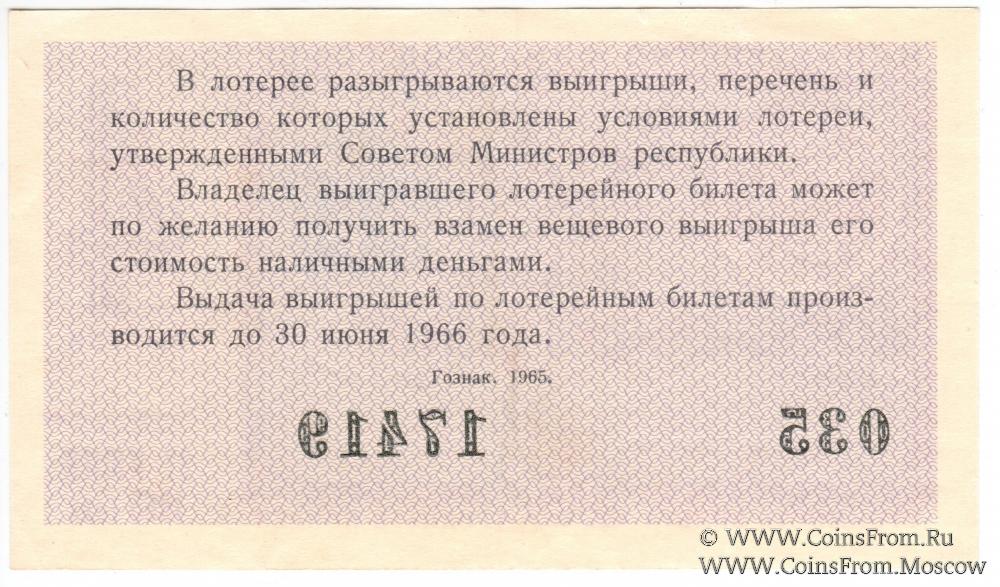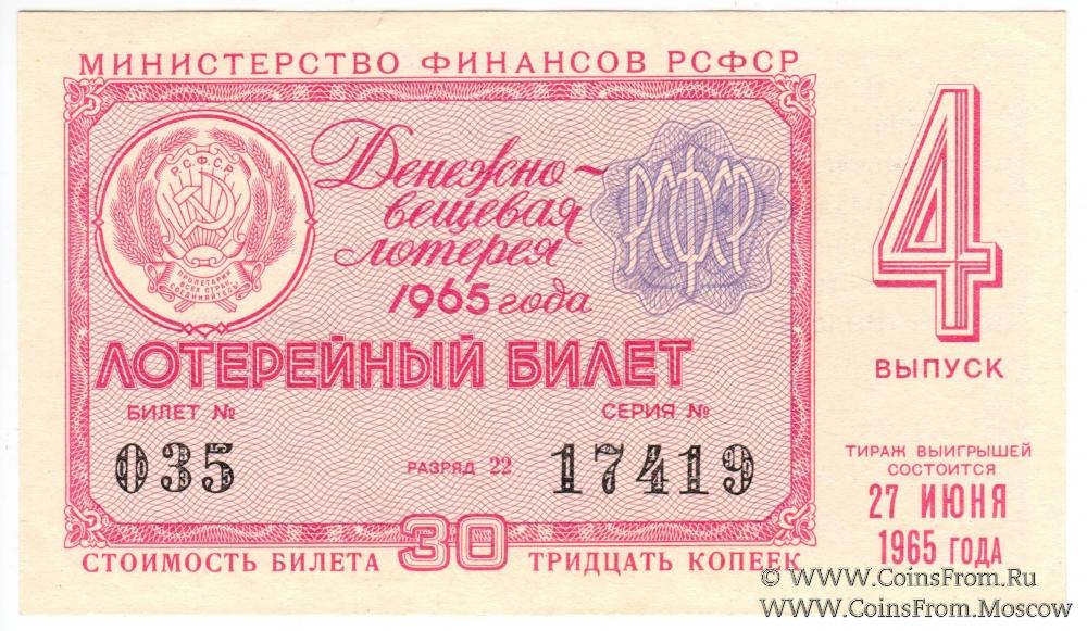 Лотерейный билет. Выпуск 4. Денежно-вещевая лотерея 1965 г.