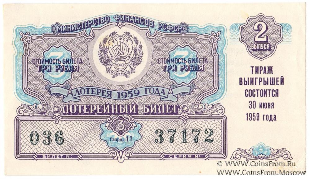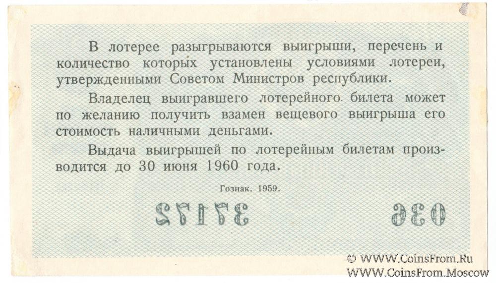 Лотерейный билет. Выпуск 2. Лотерея 1959 г.