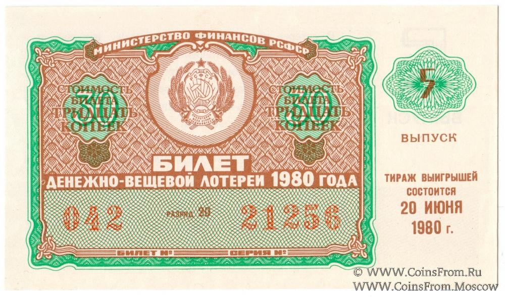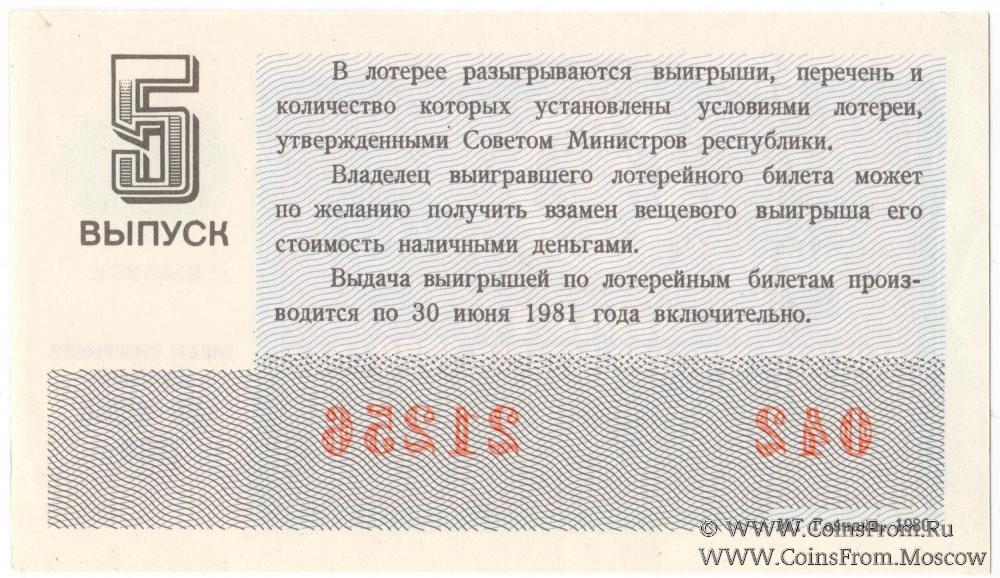 Билет. Выпуск 5. Денежно-вещевая лотерея 1980 г.
