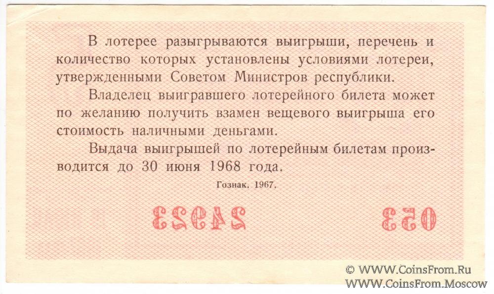Лотерейный билет. Выпуск 5. Денежно-вещевая лотерея 1967 г.