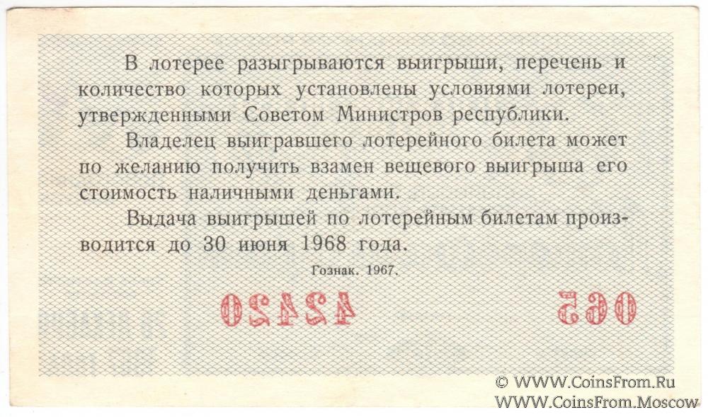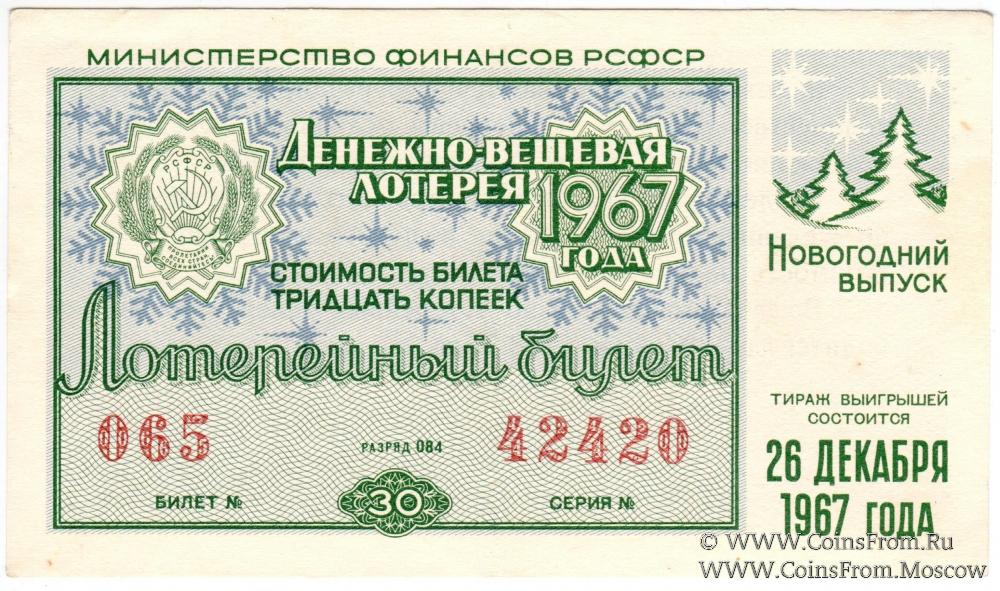 Лотерейный билет. Новогодний выпуск. Денежно-вещевая лотерея 1967 г.