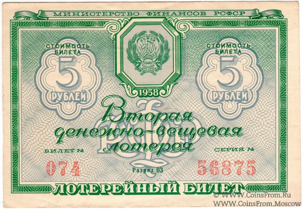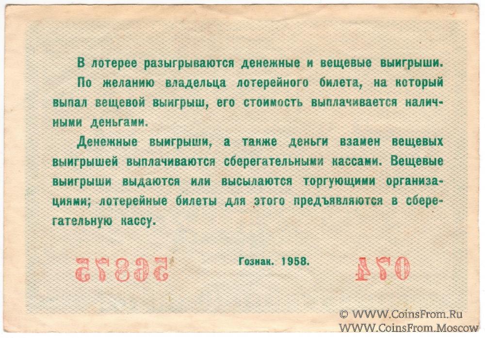 Лотерейный билет. 2-я Денежно-вещевая лотерея 1958 г.