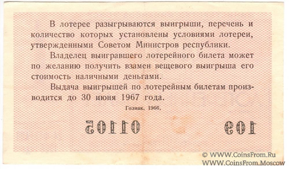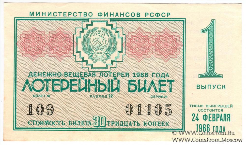 Лотерейный билет. Выпуск 1. Денежно-вещевая лотерея 1966 г.