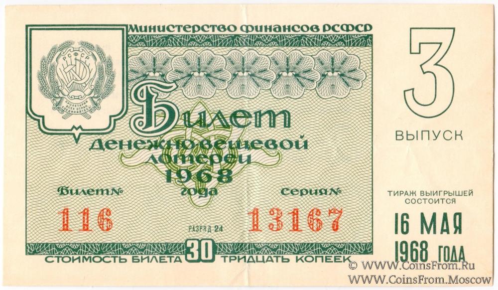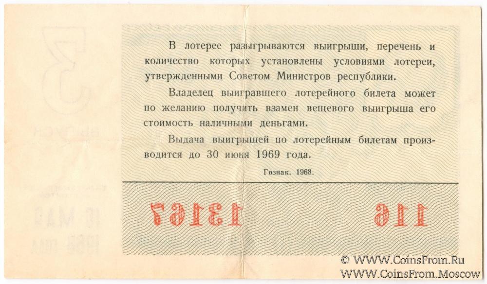 Билет. Выпуск 1. Денежно-вещевая лотерея 1968 г.
