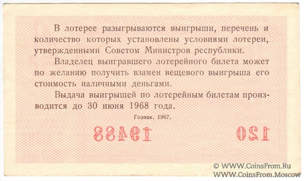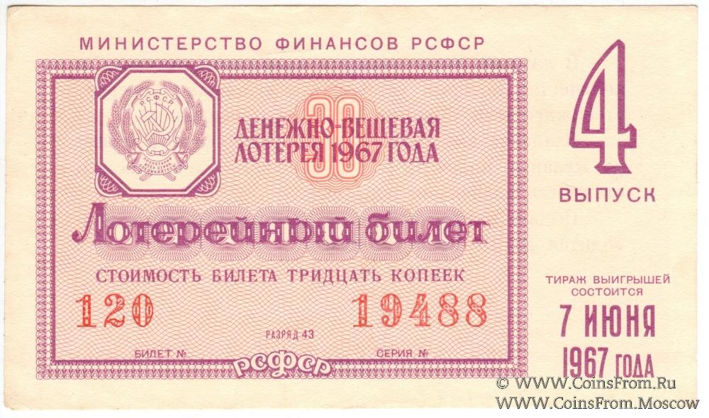 Лотерейный билет. Выпуск 4. Денежно-вещевая лотерея 1967 г.