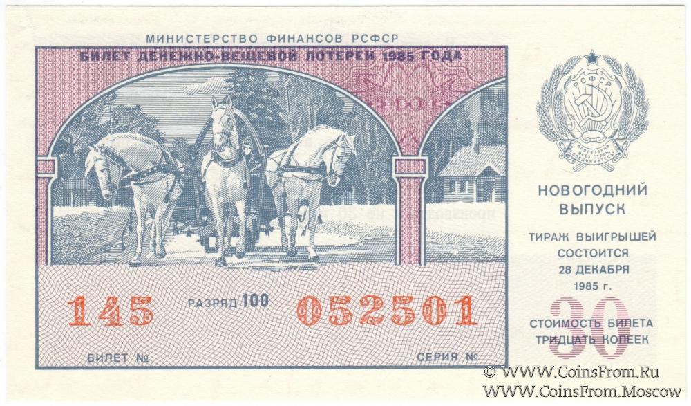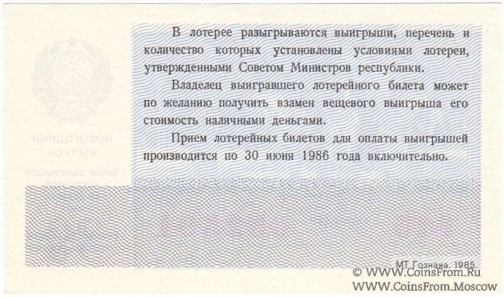 Билет. Новогодний выпуск. Денежно-вещевая лотерея 1985 г.
