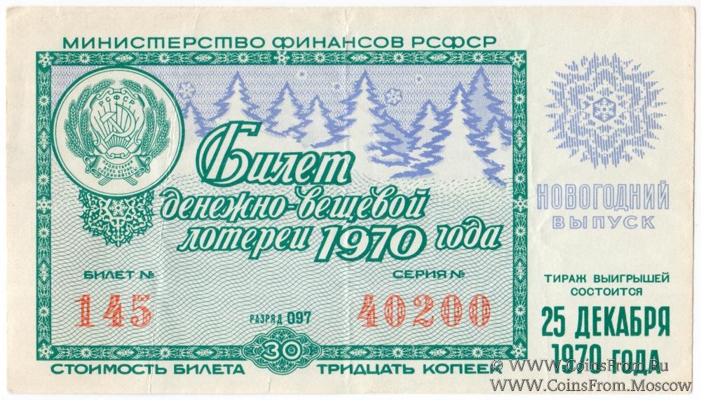 Билет. Новогодний выпуск. Денежно-вещевая лотерея 1970 г.