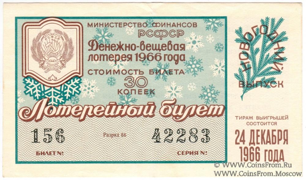 Лотерейный билет. Новогодний выпуск. Денежно-вещевая лотерея 1966 г.