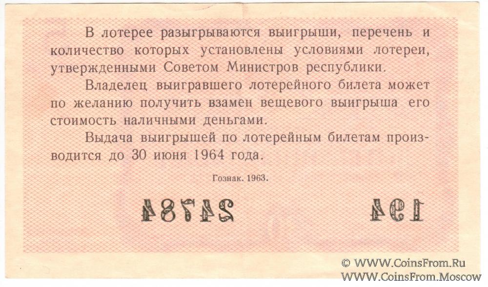 Лотерейный билет. Выпуск 5. Денежно-вещевая лотерея 1963 г.