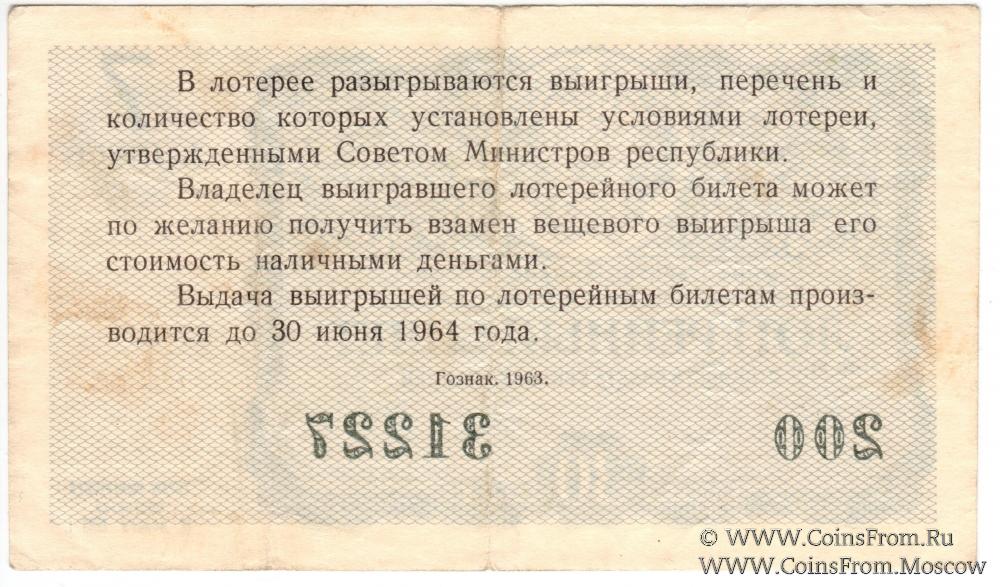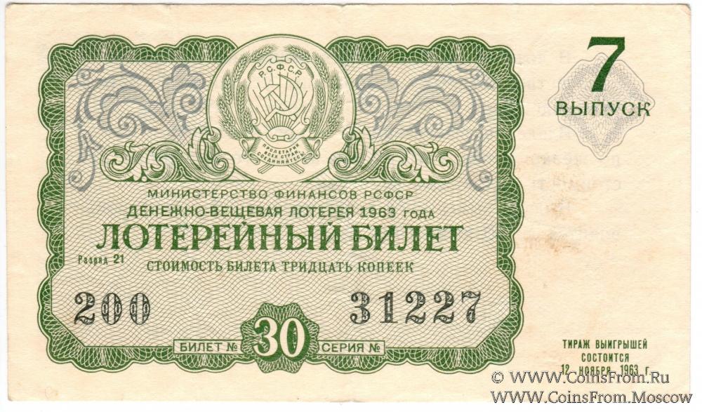 Лотерейный билет. Выпуск 7. Денежно-вещевая лотерея 1963 г.