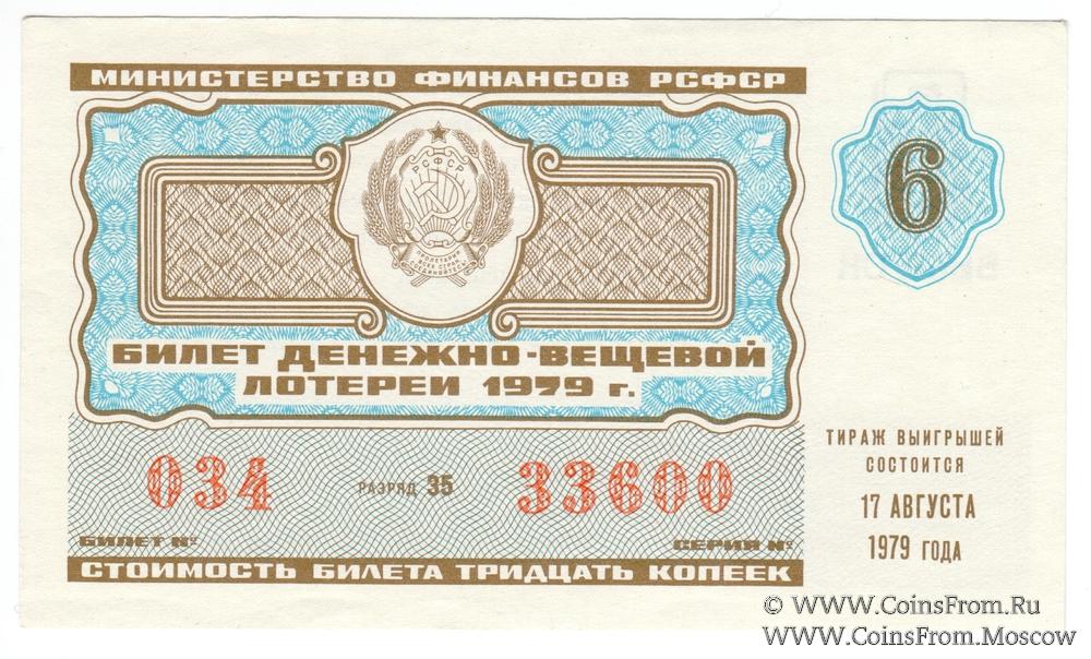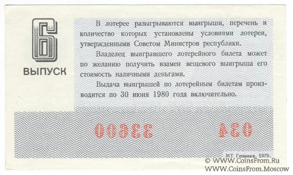 Билет. Выпуск 6. Денежно-вещевая лотерея 1979 г.