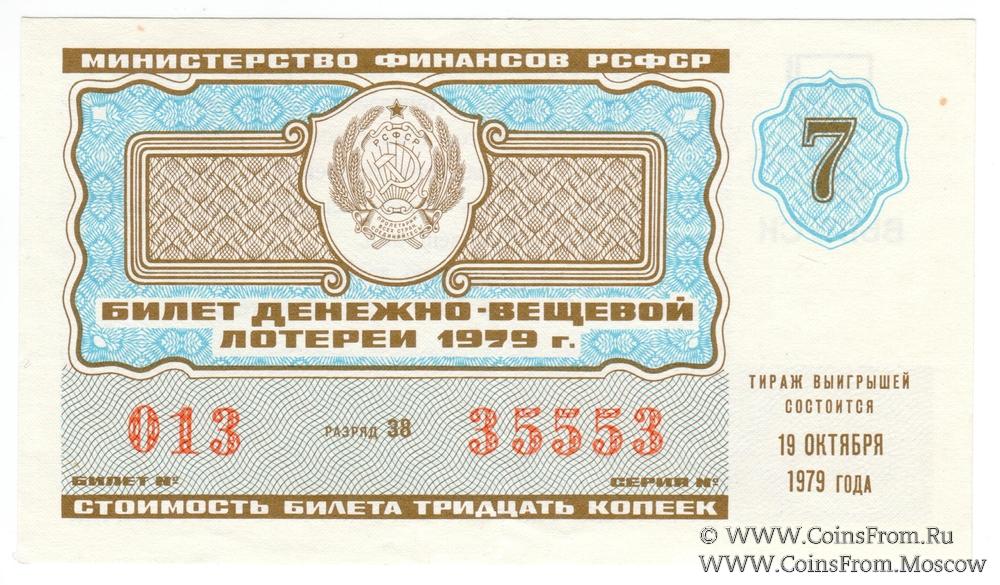 Билет. Выпуск 7. Денежно-вещевая лотерея 1979 г.