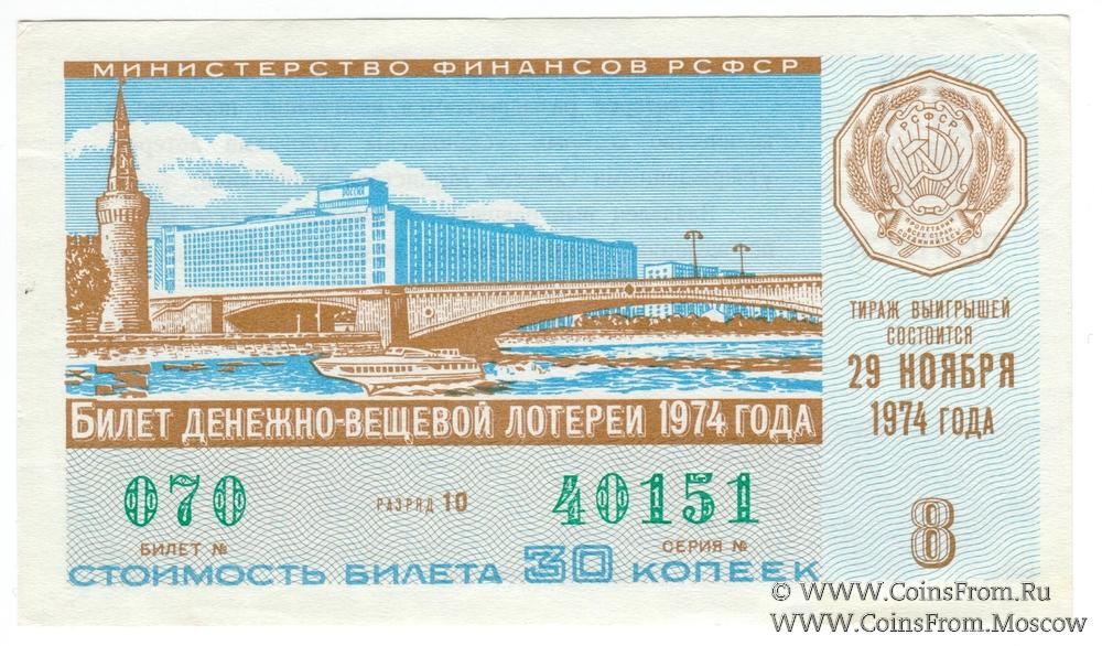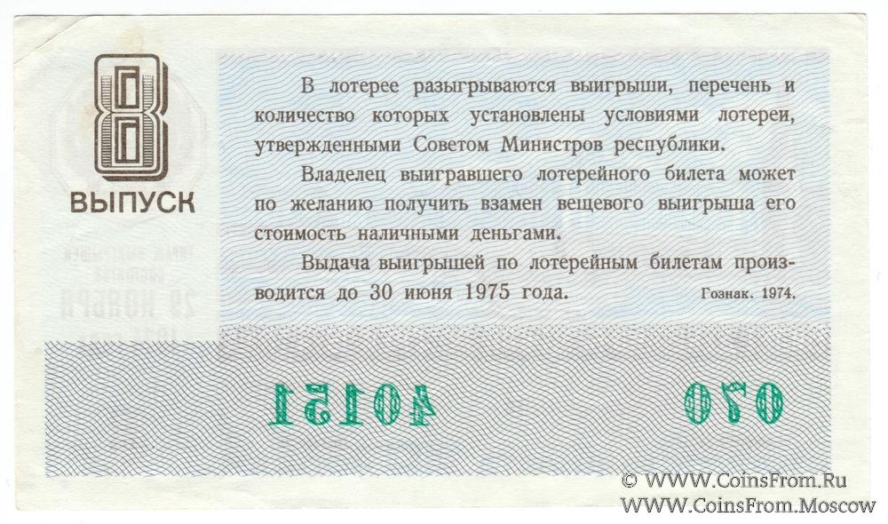 Билет. Выпуск 8. Денежно-вещевая лотерея 1974 г.