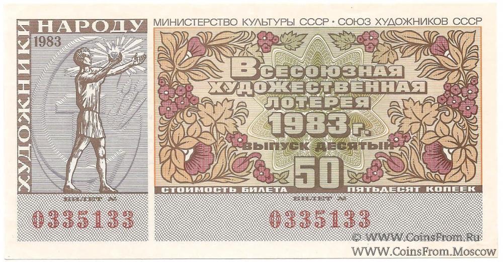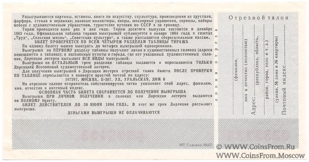 Билет. Выпуск 10. Водяной знак. Всесоюзная художественная лотерея.