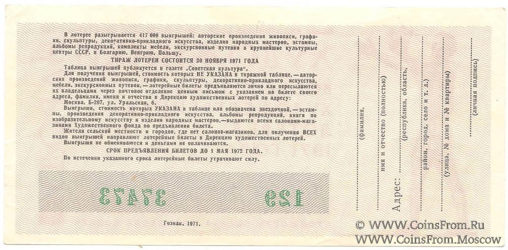 Билет. Выпуск 4. Водяной знак. Всесоюзная художественная лотерея.
