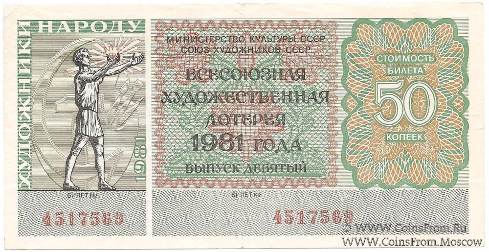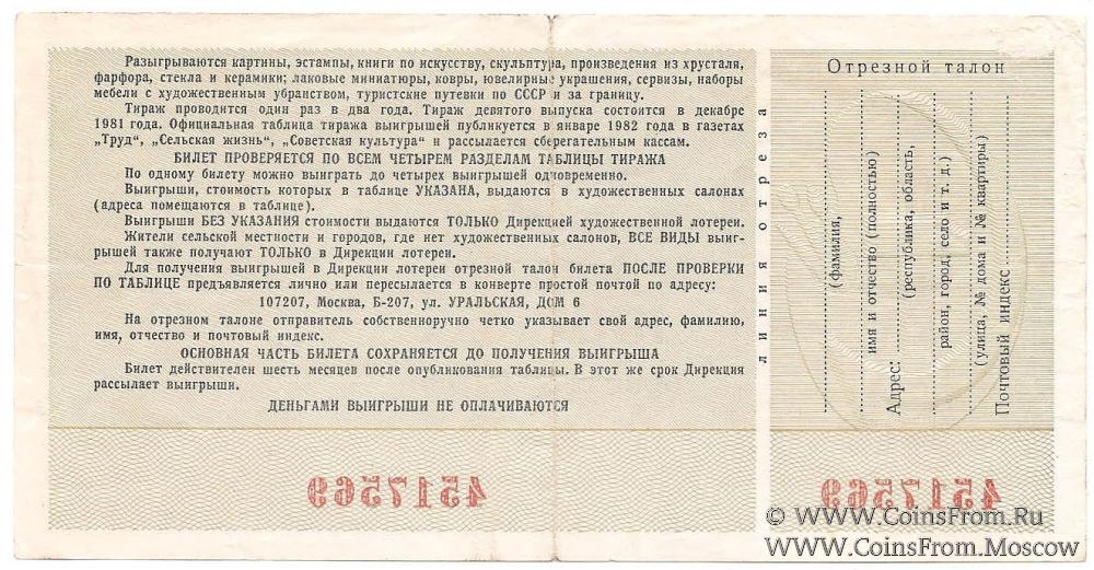 Билет. Выпуск 9. Водяной знак. Всесоюзная художественная лотерея.