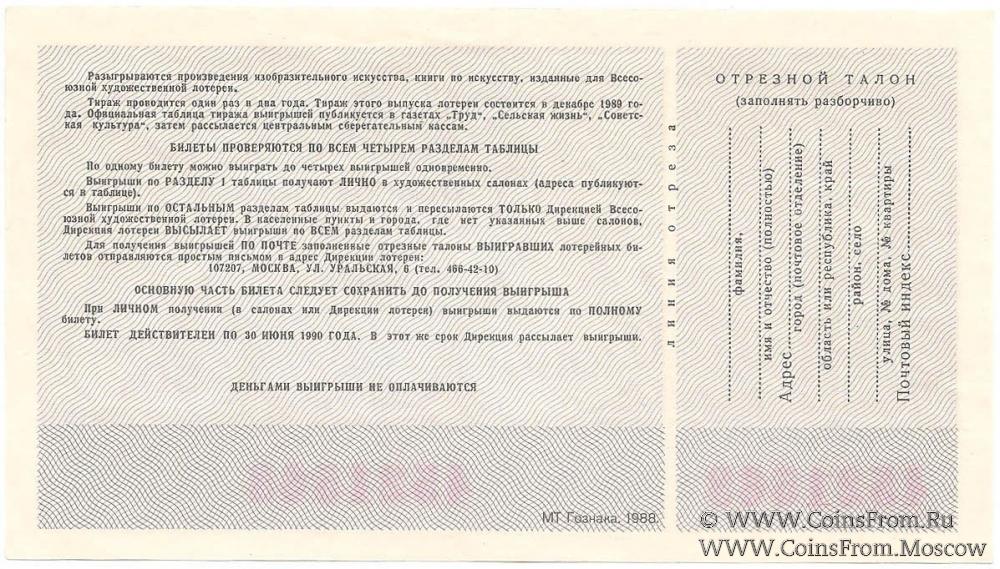 Билет. Выпуск 13. Водяной знак. Всесоюзная художественная лотерея.