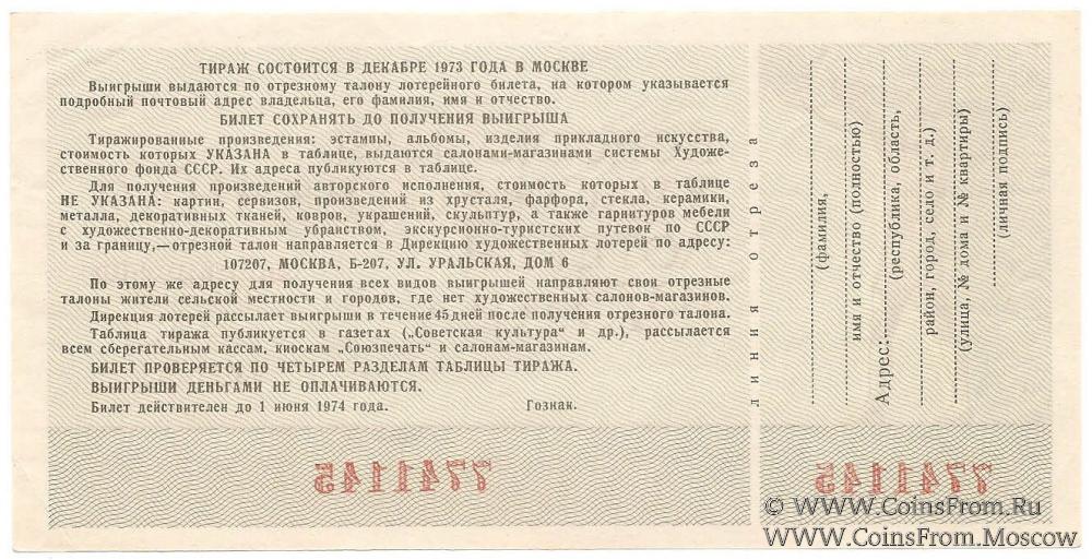 Билет. Выпуск 5. Водяной знак. Всесоюзная художественная лотерея.