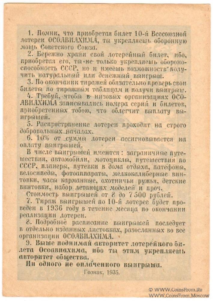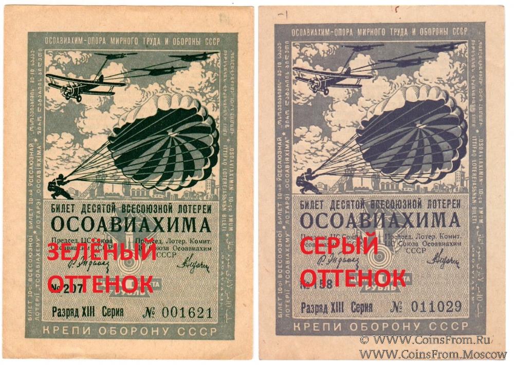 Билет. Серый оттенок. Водяной знак. Разряды I-XV. 10-я Всесоюзная лотерея 1935 г.