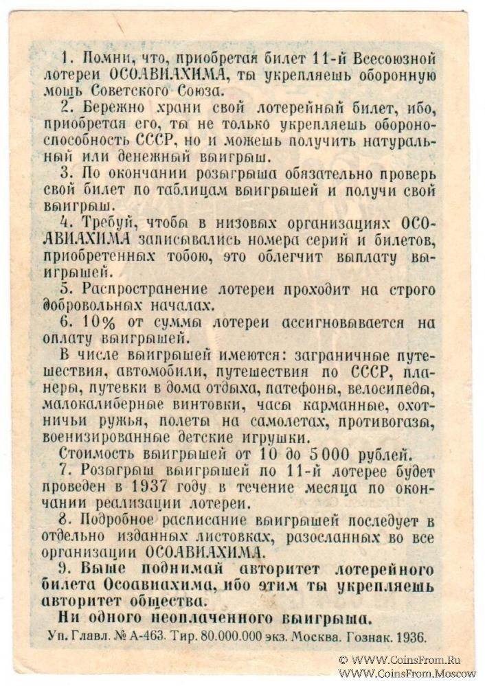 Билет. Водяной знак. Разряды I-XXXII. 11-я Всесоюзная лотерея 1936-1937 гг.