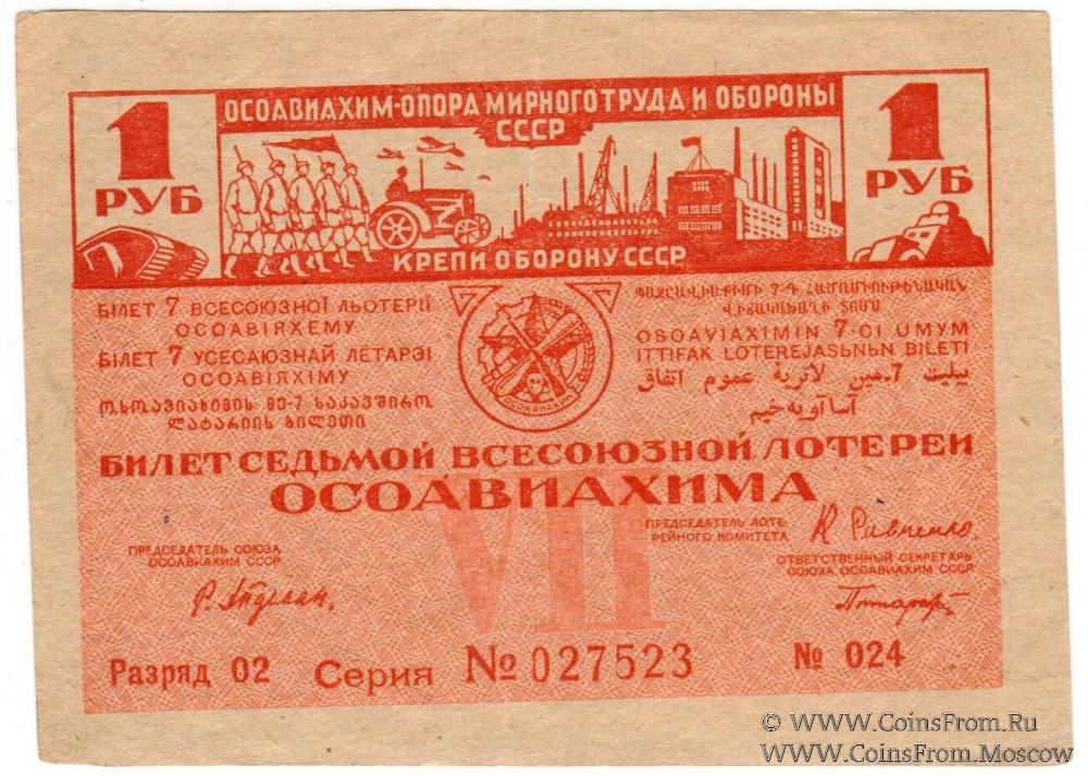 Лотерейные билеты РСФСР и СССР 1922-1991 гг. Всероссийский выпуск.