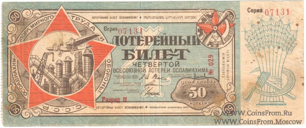Лотерейный билет. Разряд II. 4-я Всесоюзная лотерея 1929 г. Водяной знак. Гознак 1929 г.