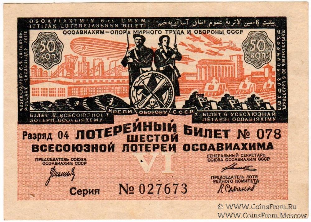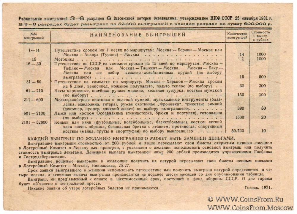 Лотерейный билет. Водяной знак. Разряды 01-06. 6-я Всесоюзная лотерея 1931 г.