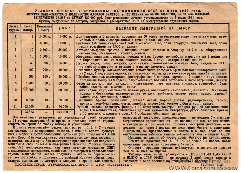 Лотерейные билеты РСФСР и СССР 1922-1991 гг. Всероссийский выпуск.
