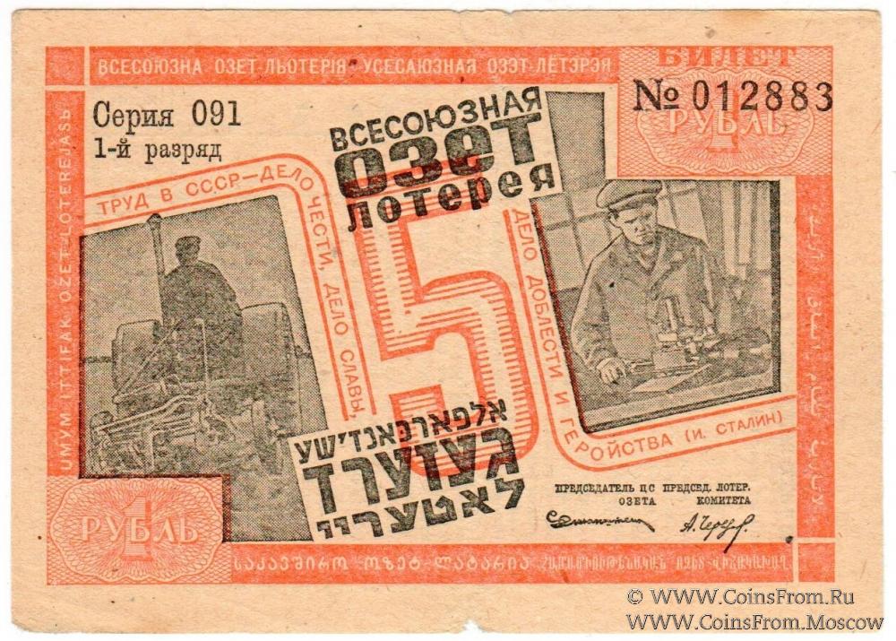 Лотерейные билеты РСФСР и СССР 1922-1991 гг. Всероссийский выпуск.