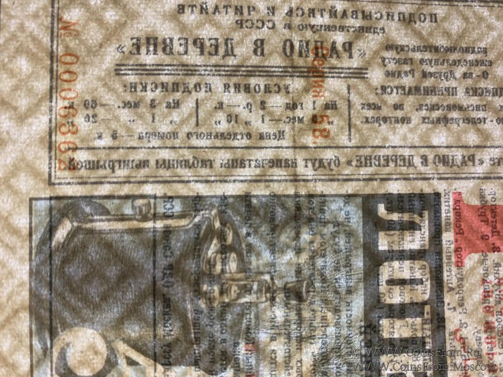 Лотерейный билет. Водяной знак - "узор из ромбов". 1-я Всесоюзная вещевая крестьянская радио-лотерея.