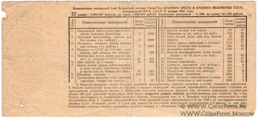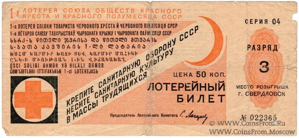 Лотерейный билет. Разряд 3 - Свердловск. 1-я лотерея.
