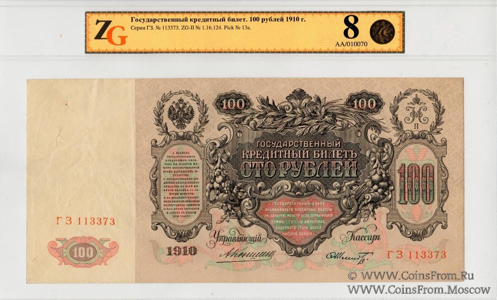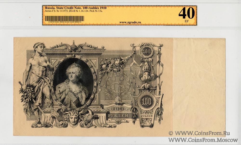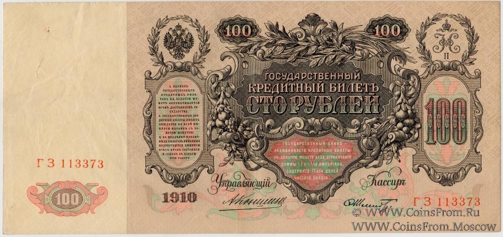 Государственный кредитный билет образца 1910 г. Серия ГЗ. Управляющий - Коншин А.В. Кассир - Шмидт Ф. Государственный Банк. Экспедиция заготовления Государственных бумаг (ЭЗГБ).