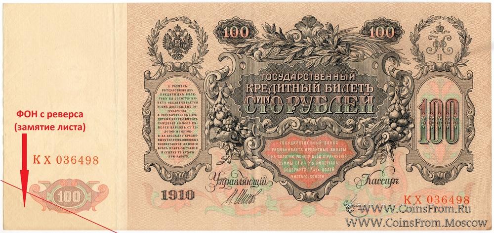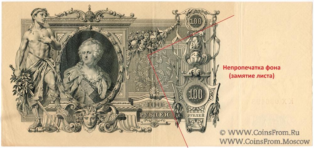 БРАК печати: часть фона напечатана на белом поле на аверсе; недопечатка фона на реверсе (замятие листа). Серия КХ. Выпуск Советского правительства (серии КО-МН). Управляющий - Шипов, кассир - Метц. Государственный Банк. Экспедиция заготовления Государственных бумаг (ЭЗГБ).