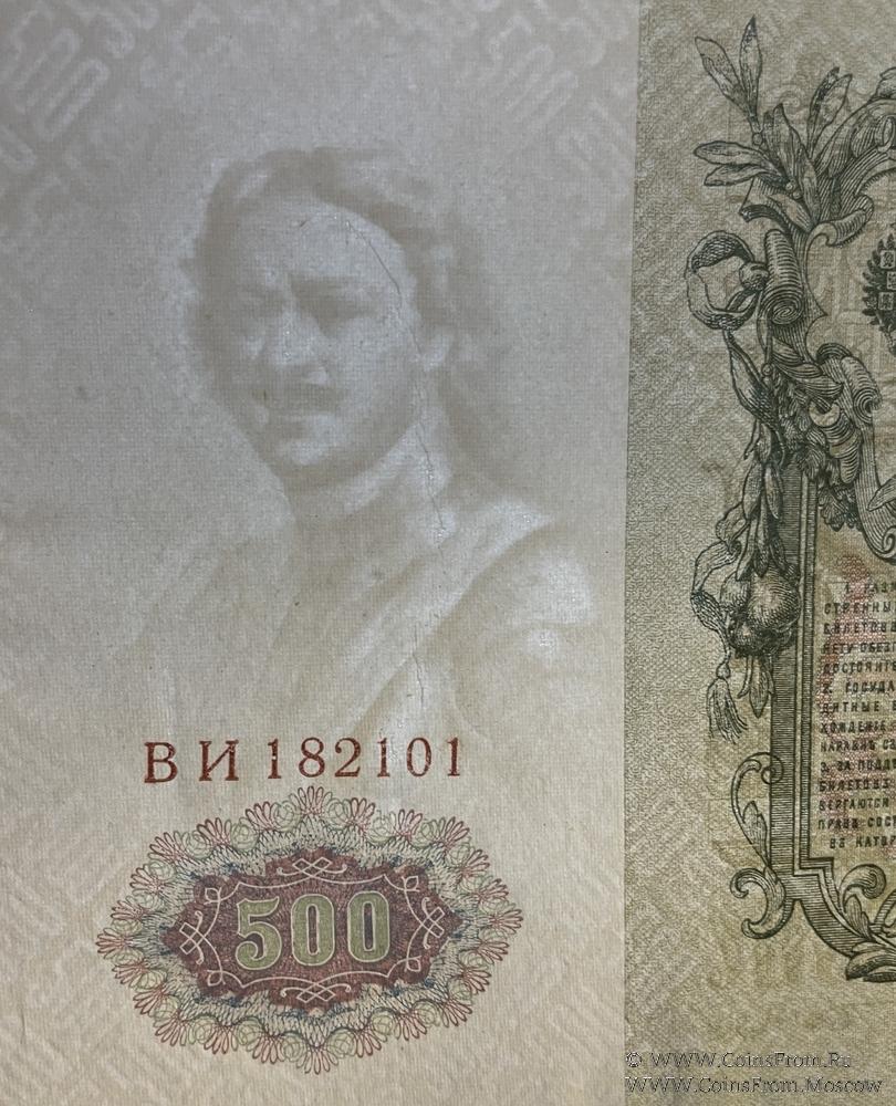Водяной знак: справа, на купоне - портрет императора Петра I. По всему полю - повторяющиеся по углом 45 градусов числа 500, расположенные перпендикулярно друг другу.