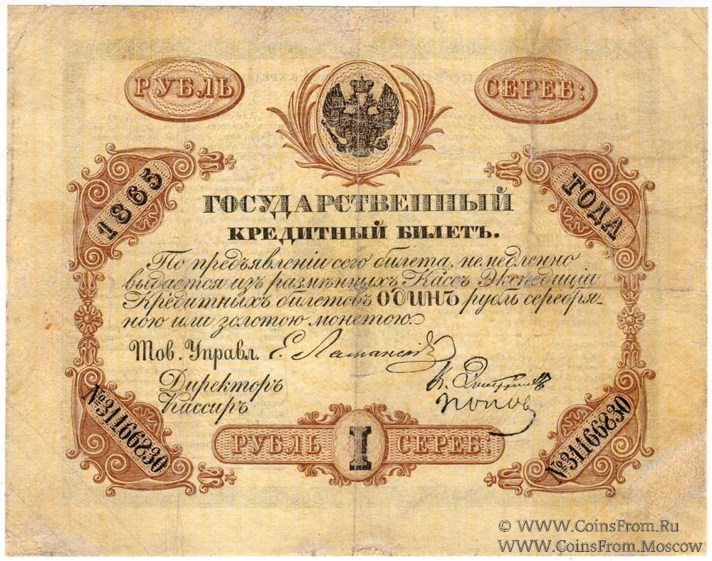 Государственные кредитные билеты образца 1861-1865 гг. Тов. Управляющего Ламанский Е.И.