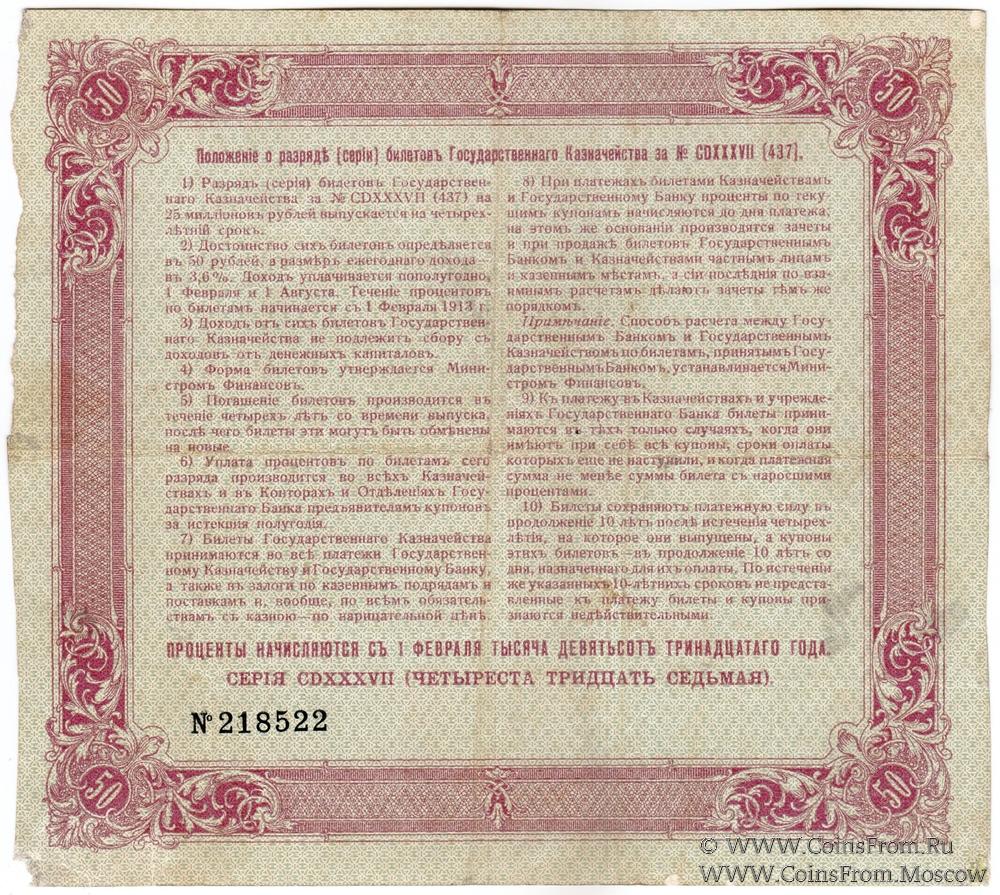 Серия 437 (Разряд CDXXXVII). Подпись директора - Небольсин П. Билет Государственного Казначейства (БГК).