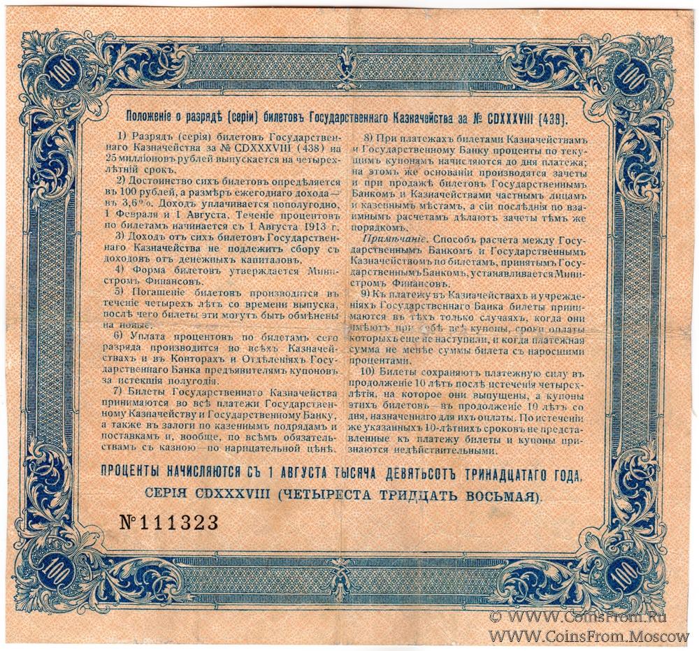 100 рублей 1913 г. (Серия 438)
