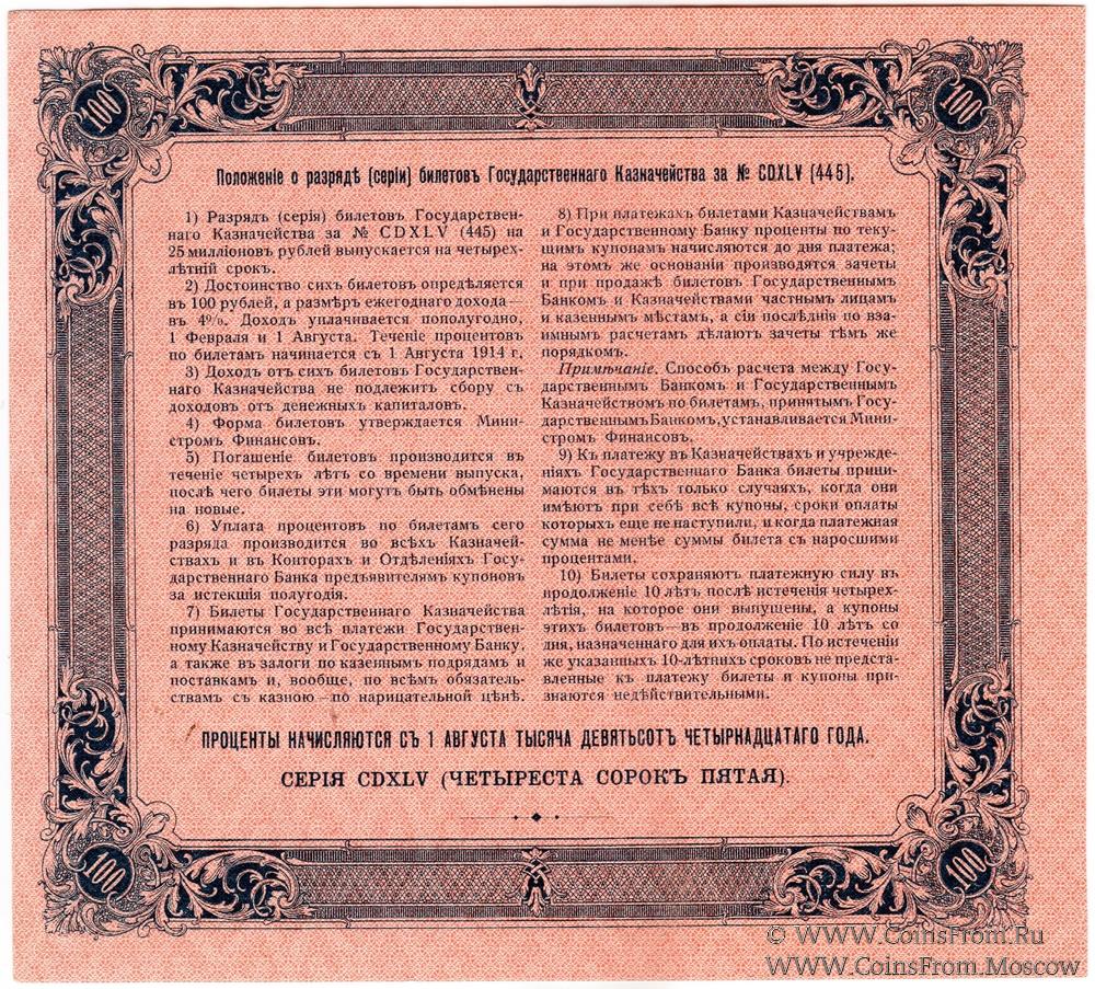 Серия 445 (Разряд CDXLV). Подпись директора - Небольсин П. Билет Государственного Казначейства (БГК).
