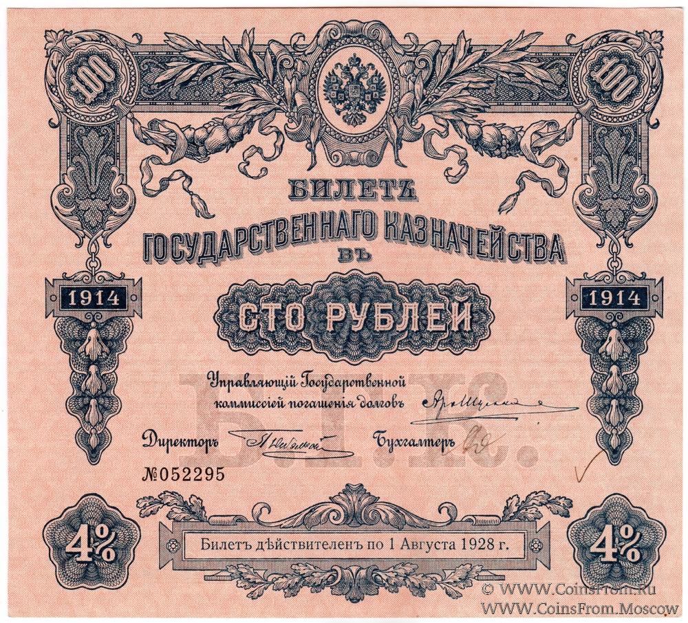 Ежегодный доход - 4%. Проценты начисляются с 1 августа 1914 г.