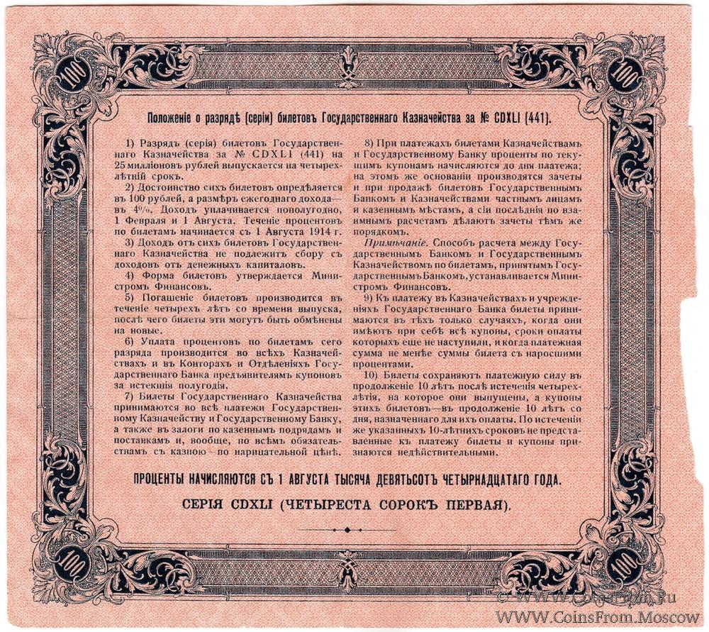 100 рублей 1914 г. (Серия 441)