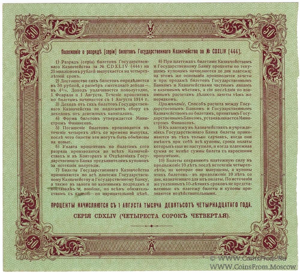 Серия 444 (Разряд CDXLIV). Подпись директора - Андреевский А. Билет Государственного Казначейства (БГК).