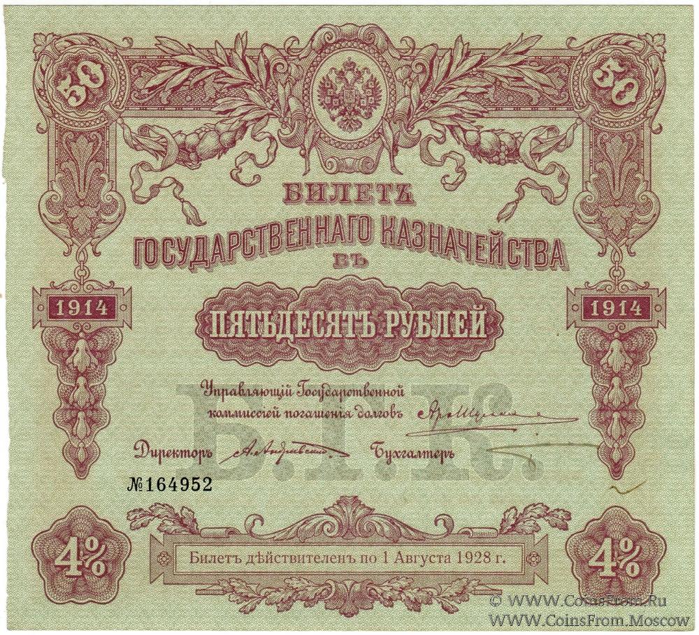 Ежегодный доход - 4%. Проценты начисляются с 1 августа 1914 г.