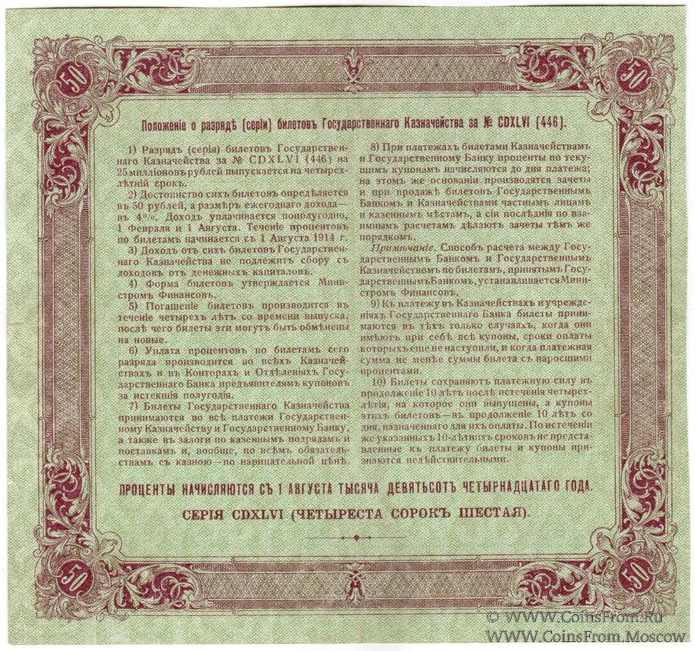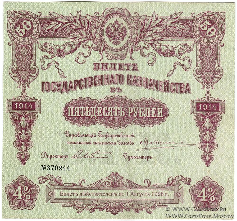 Ежегодный доход - 4%. Проценты начисляются с 1 августа 1914 г.