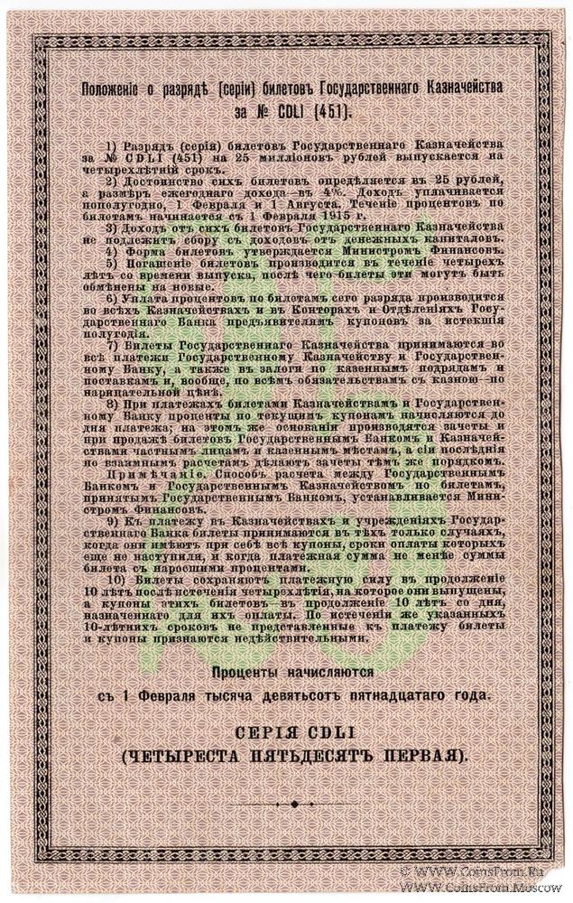 Ежегодный доход - 4%. Проценты начисляются с 1 февраля 1915 г..
