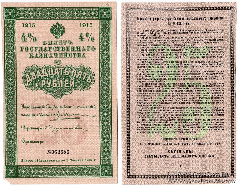 Серия 451 (Разряд CDLI). Подпись директора - Круликовский Г. Билет Государственного Казначейства (БГК).