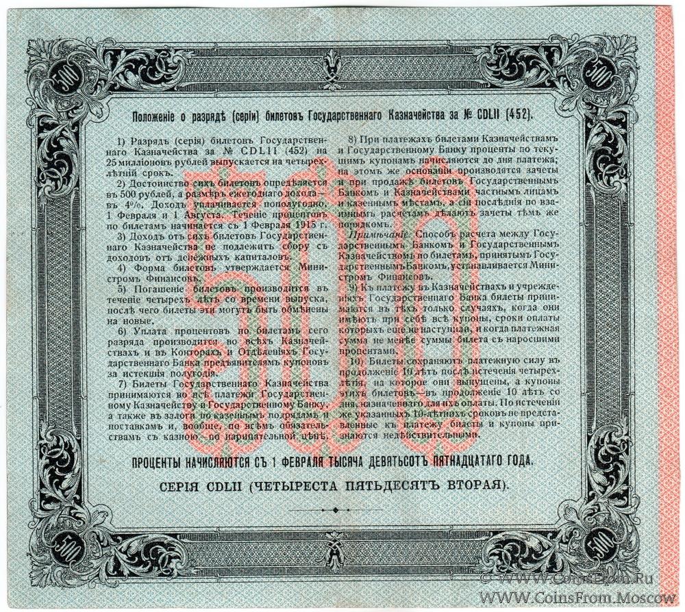 500 рублей 1915 г. (Серия 452)