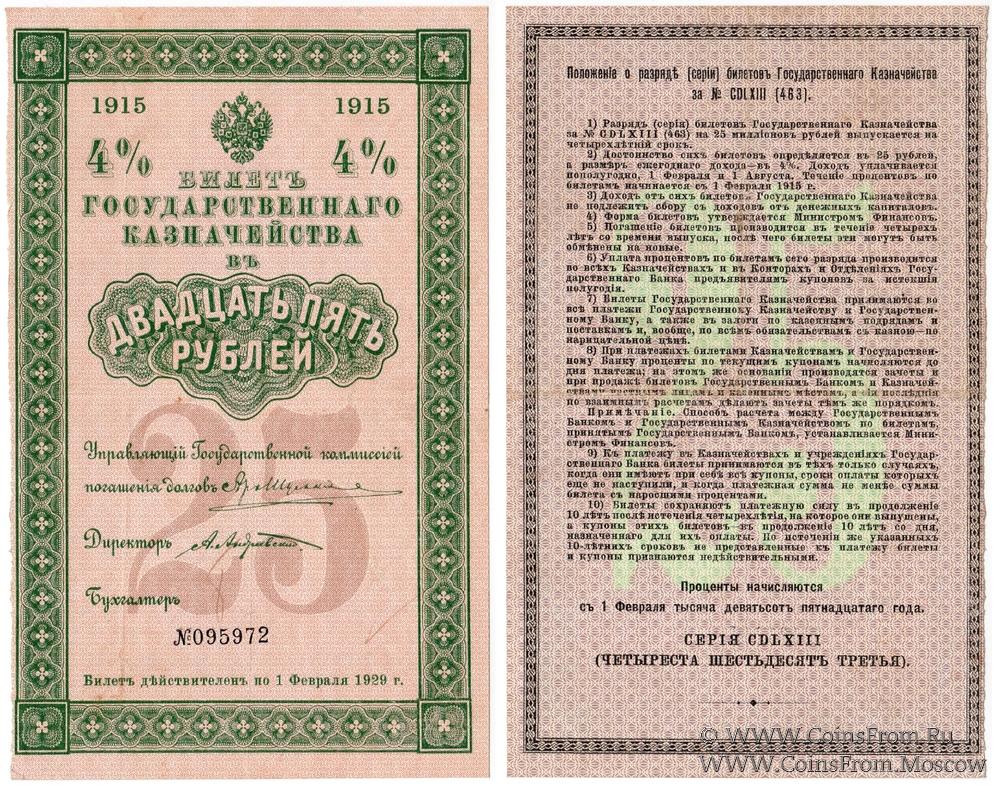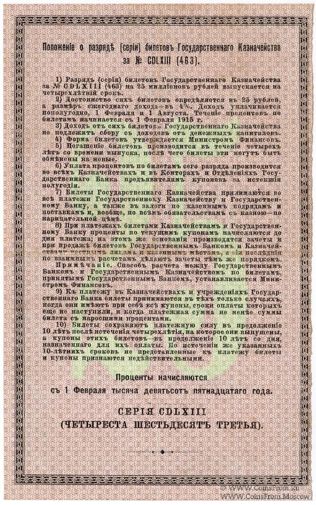 25 рублей 1915 г. (Серия 463)