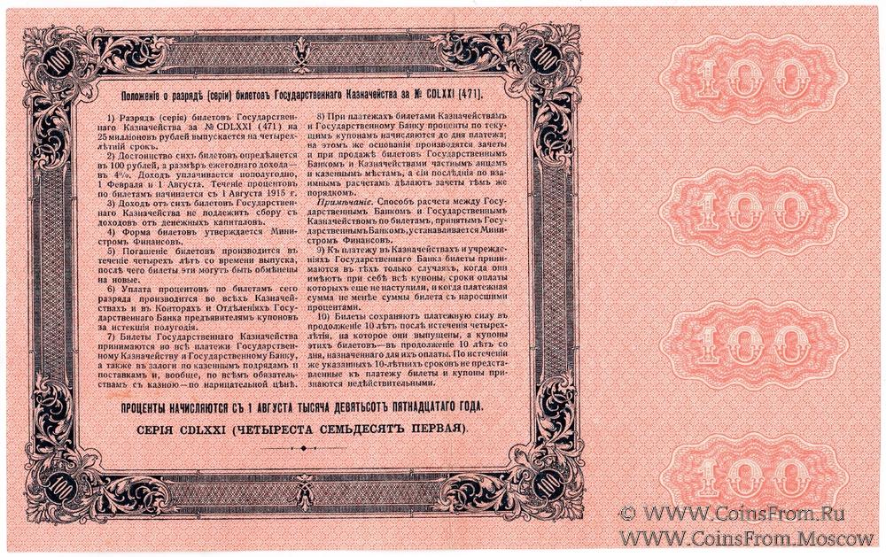 Ежегодный доход - 4%. Проценты начисляются с 1 августа 1915 г.