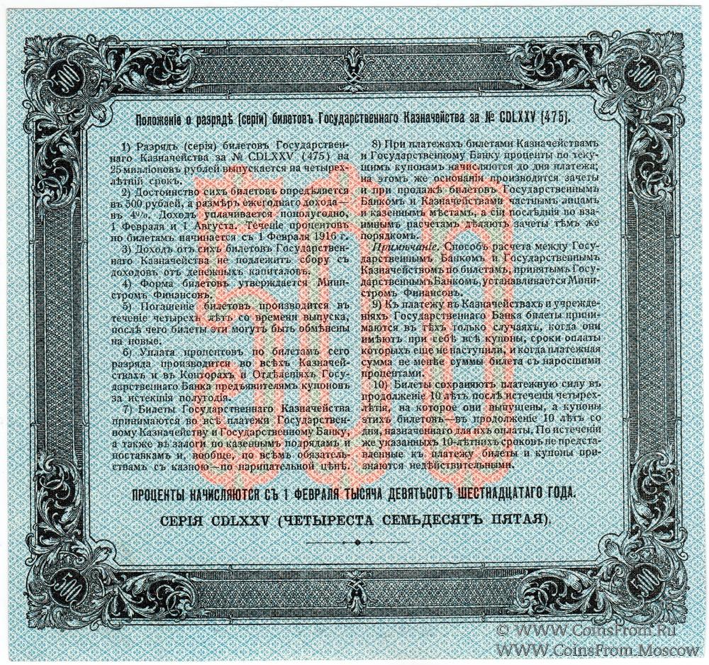 500 рублей 1916 г. (Серия 475)