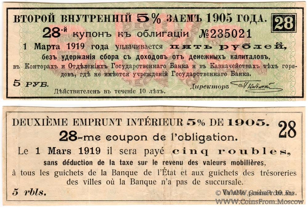 28-й Купон купонного листа  второго десятилетия Второго Внутреннего 5% займа 1905 года.